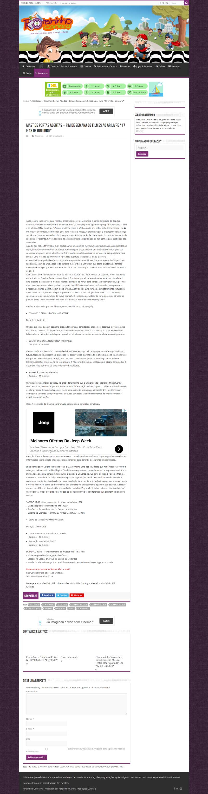 Roteirinho Carioca - MAST de Portas Abertas | Fim de Semana de filmes ao ar livre