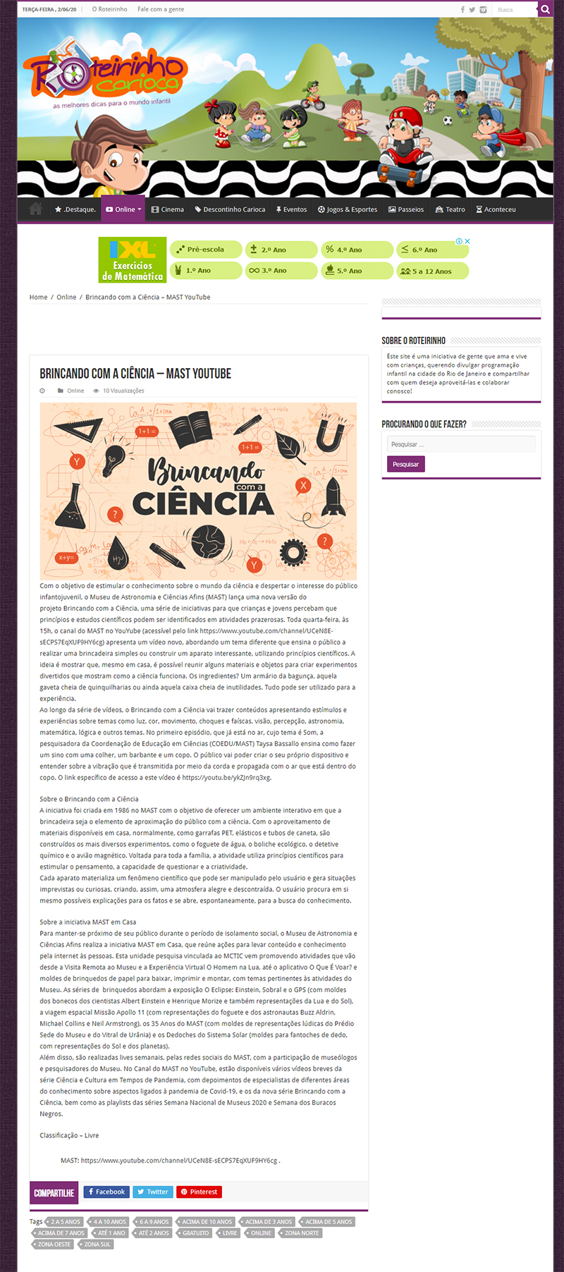 Roteirinho Carioca | MAST em Casa lança série de vídeos ‘Brincando com a Ciência’