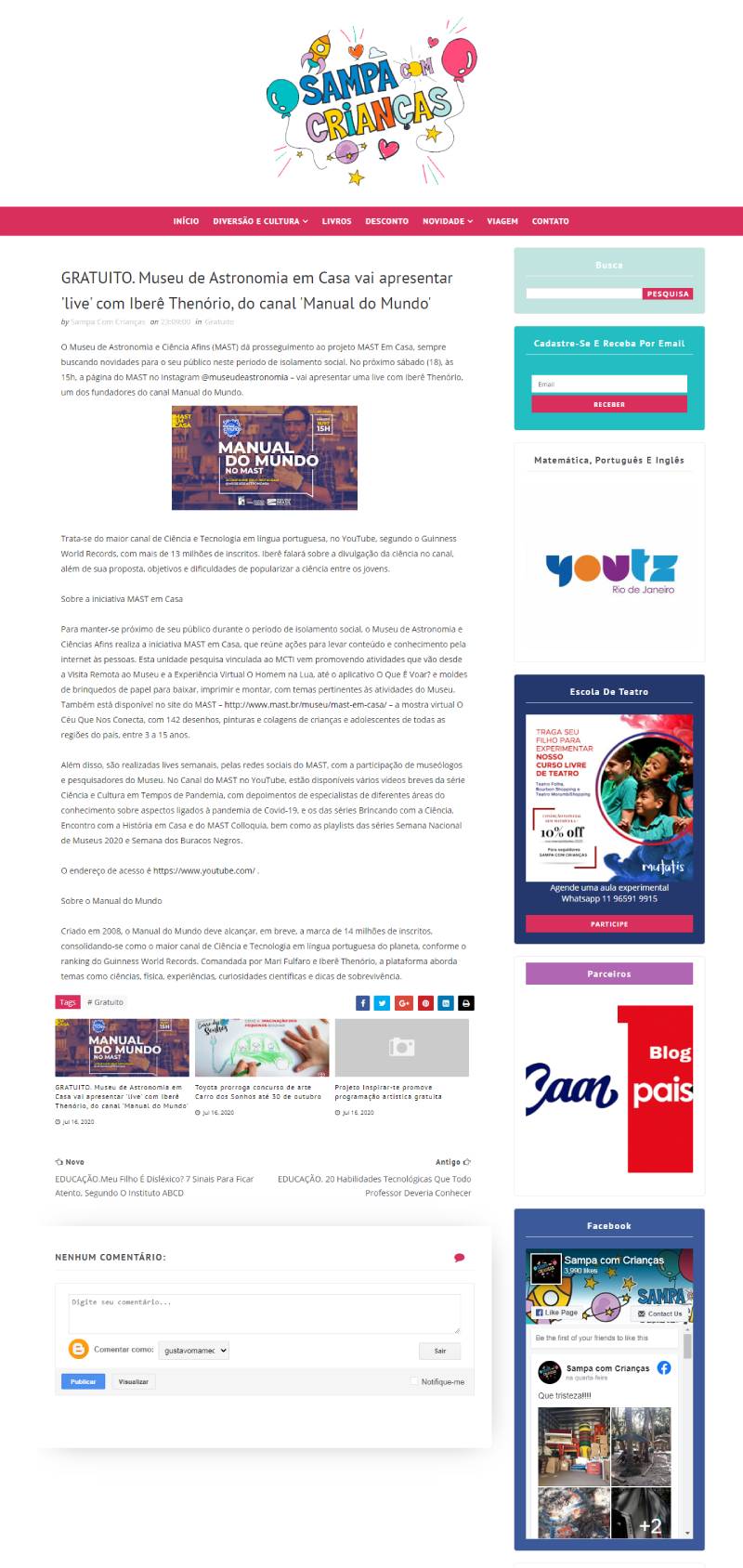 Roteirinho Carioca | MAST Em Casa vai apresentar live com Iberê Thenório, do canal Manual do Mundo