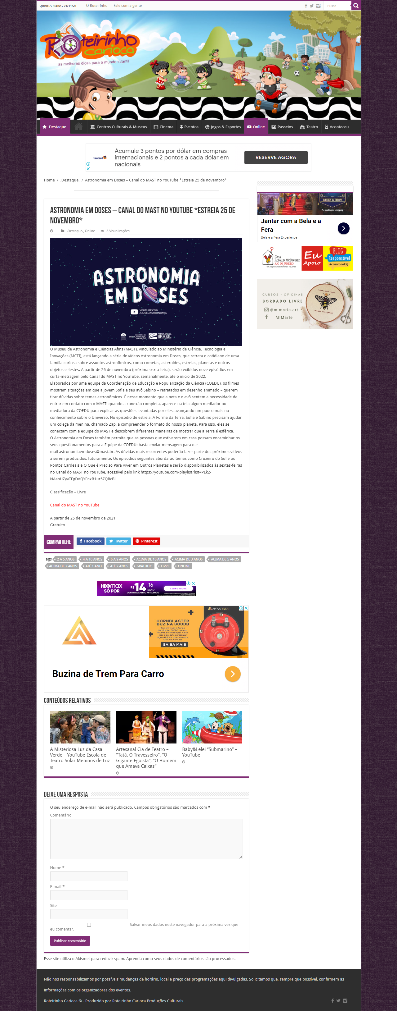 Roteirinho Carioca - MAST lança a série de vídeos 'Astronomia em Doses'