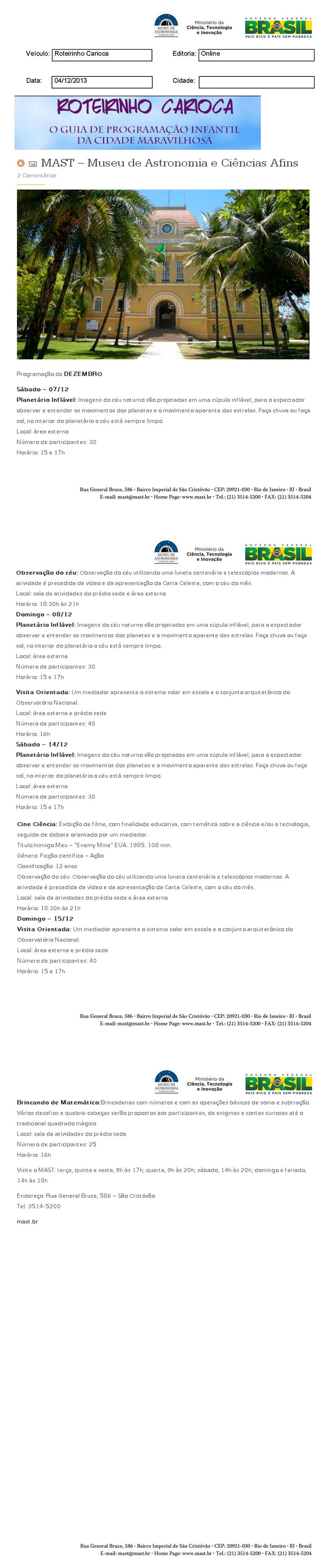 Roteirinho Carioca | MAST - Museu de Astronomia e Ciências Afins