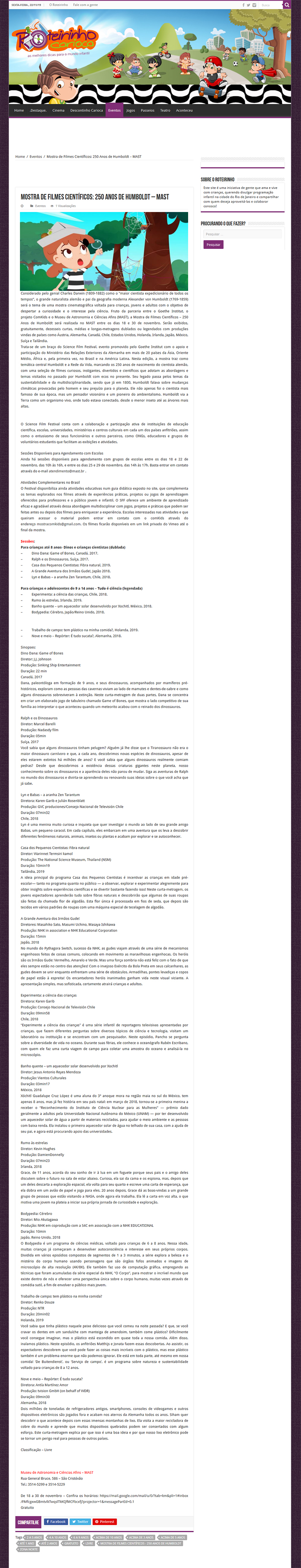 Roteirinho Carioca | MAST sedia Mostra Filmes Humboldt 250 anos
