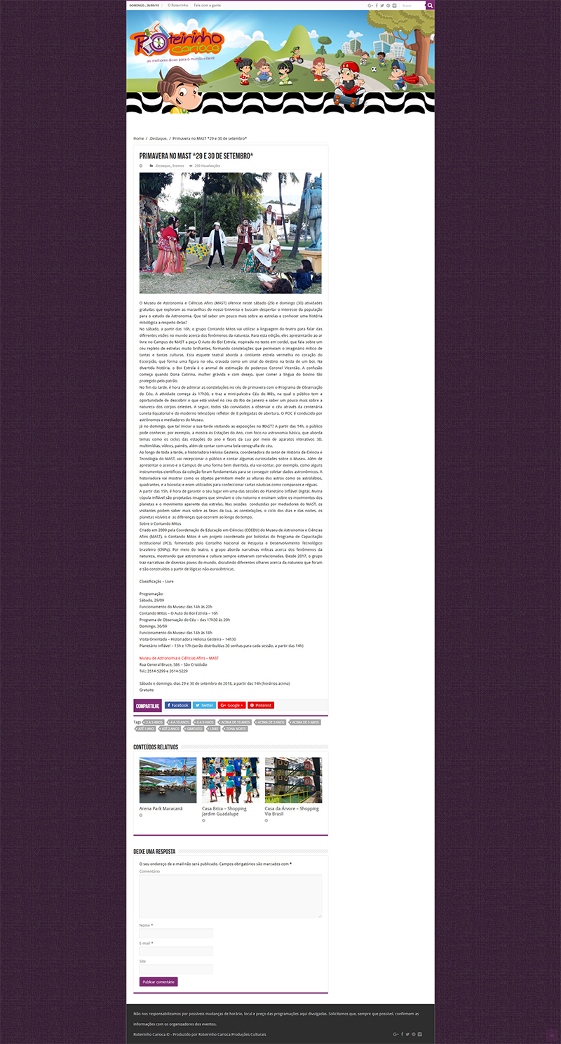 Roteirinho Carioca | Primavera no MAST - 29 e 30 de Setembro