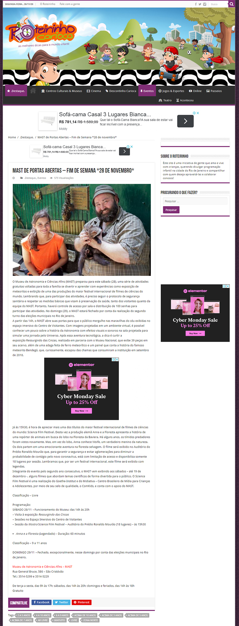 Roteirinho Carioca | Sábado no MAST com filme alemão e meteoritos