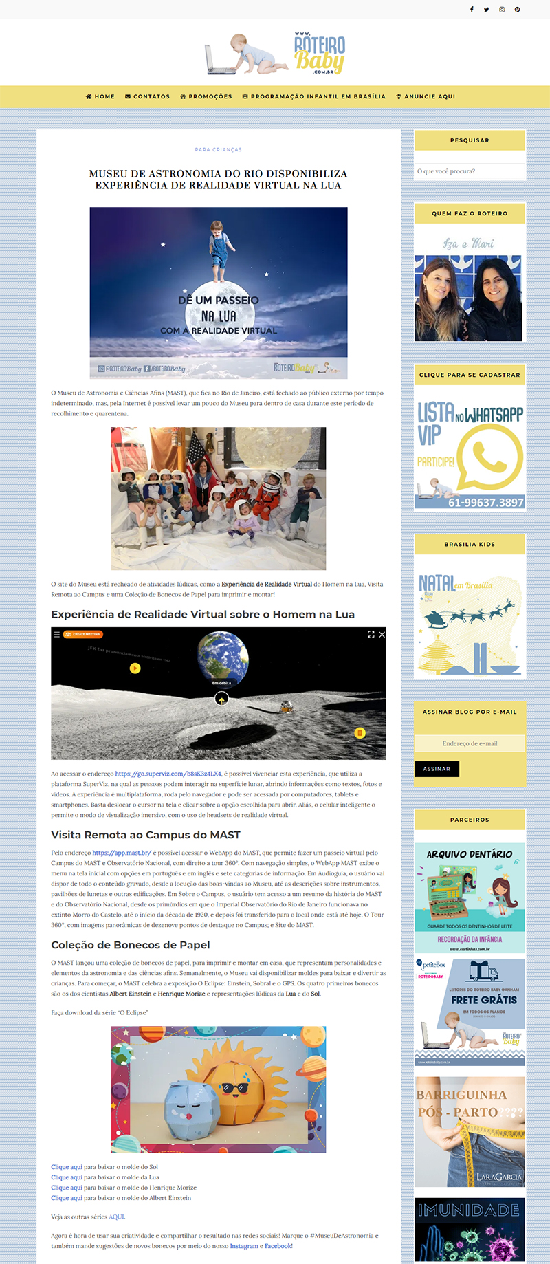 Roteiro Baby (Brasília - DF) - MAST disponibiliza visita virtual e brinquedos para imprimir e montar