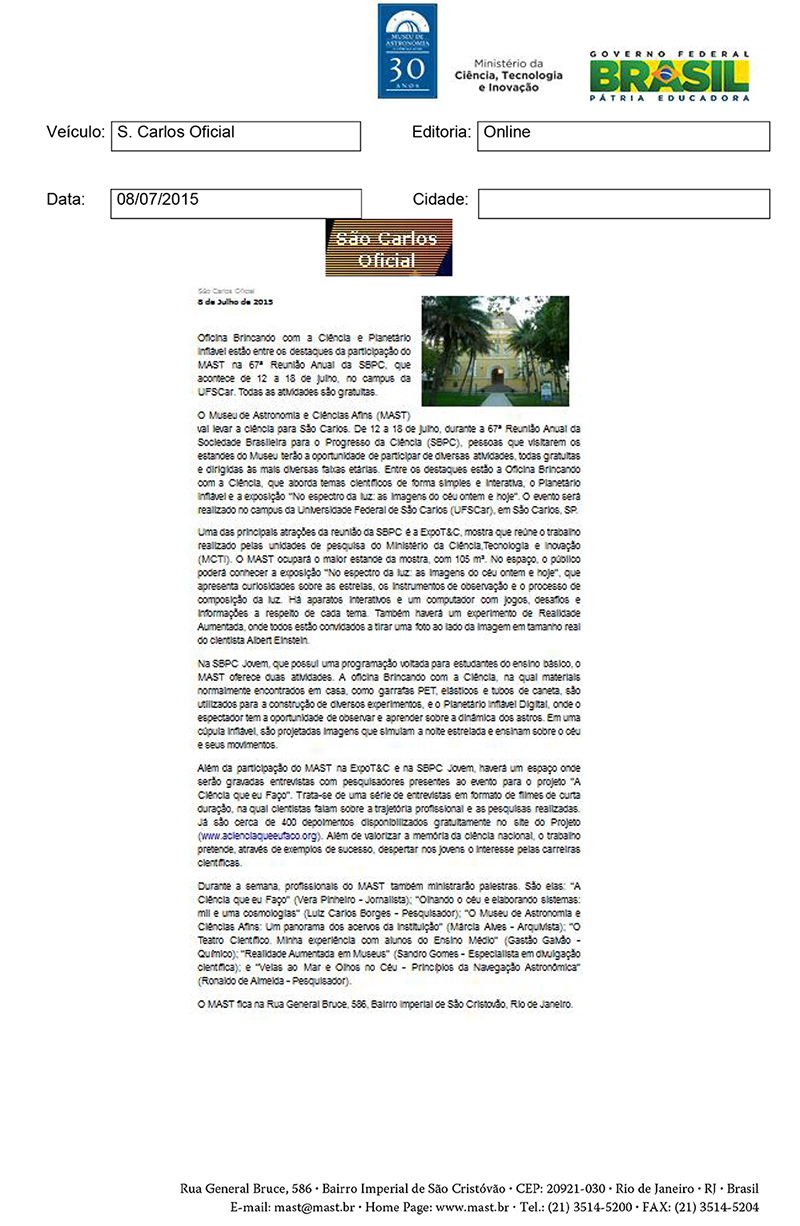 São Carlos oficial | Museu de Astronomia e Ciências Afins