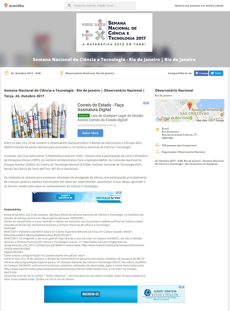 Site SNCT | Semana Nacional de Ciência e Tecnologia - Rio de Janeiro