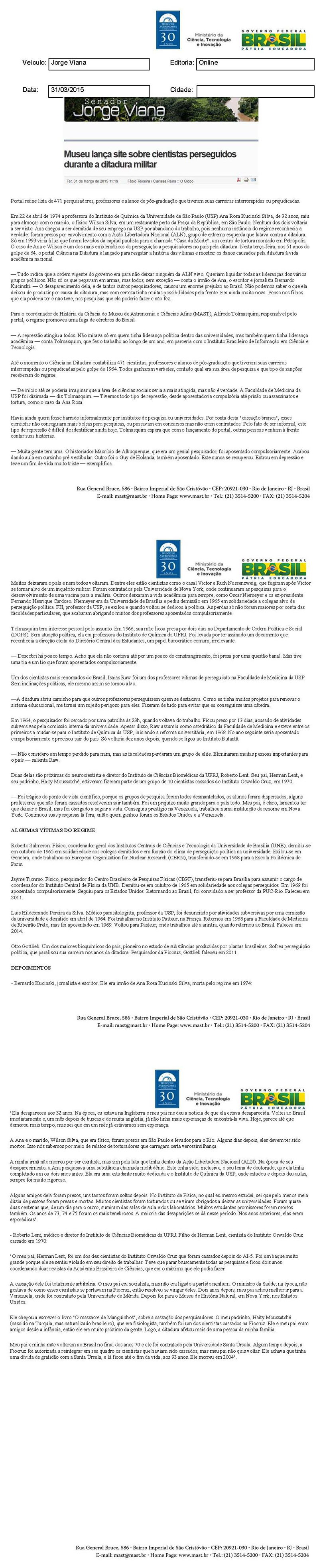 Senador Jorge Viana | Museu lança site sobre cientistas perseguidos durante a ditadura militar