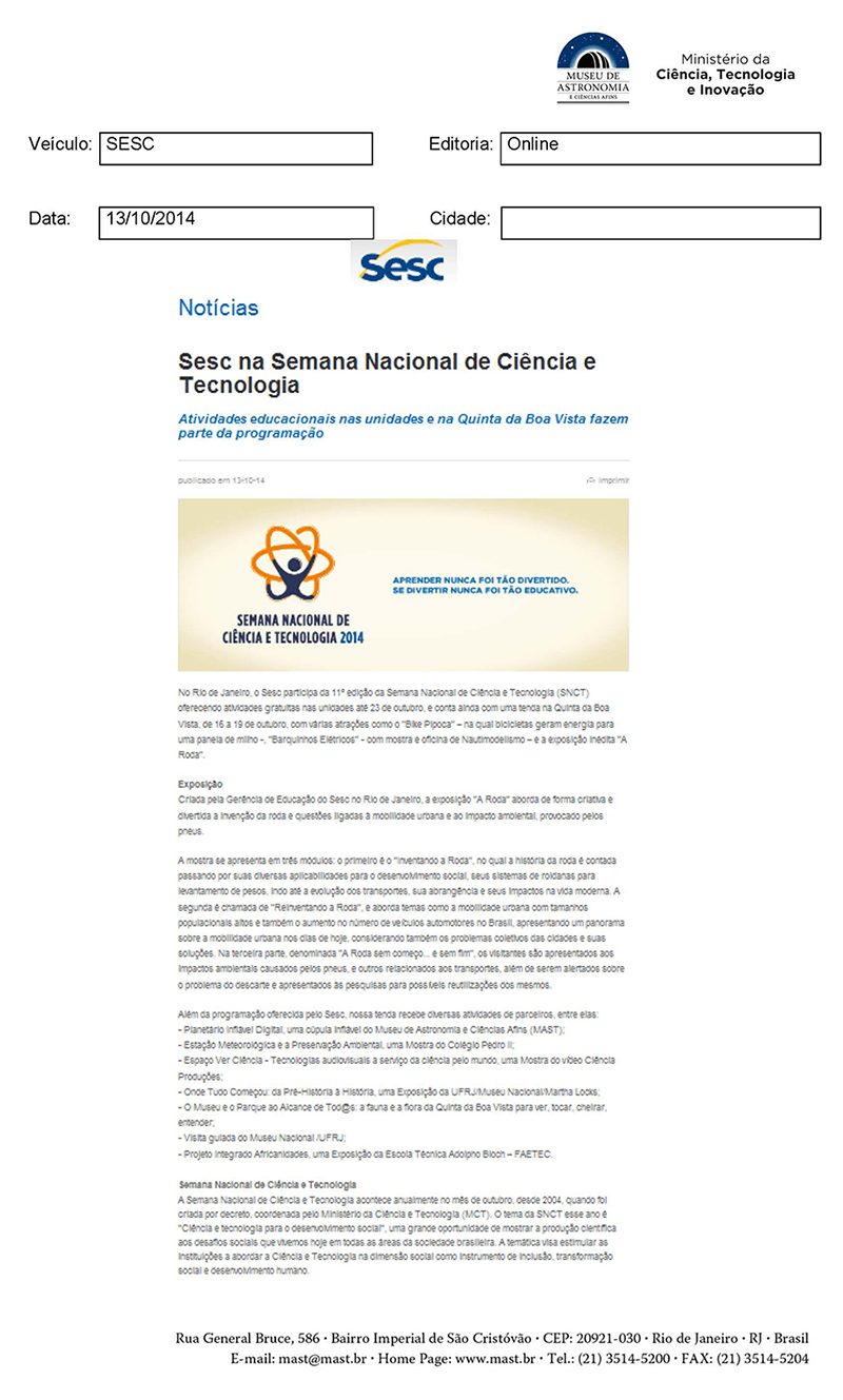 SESC | SESC na Semana Nacional de Ciência e Tecnologia