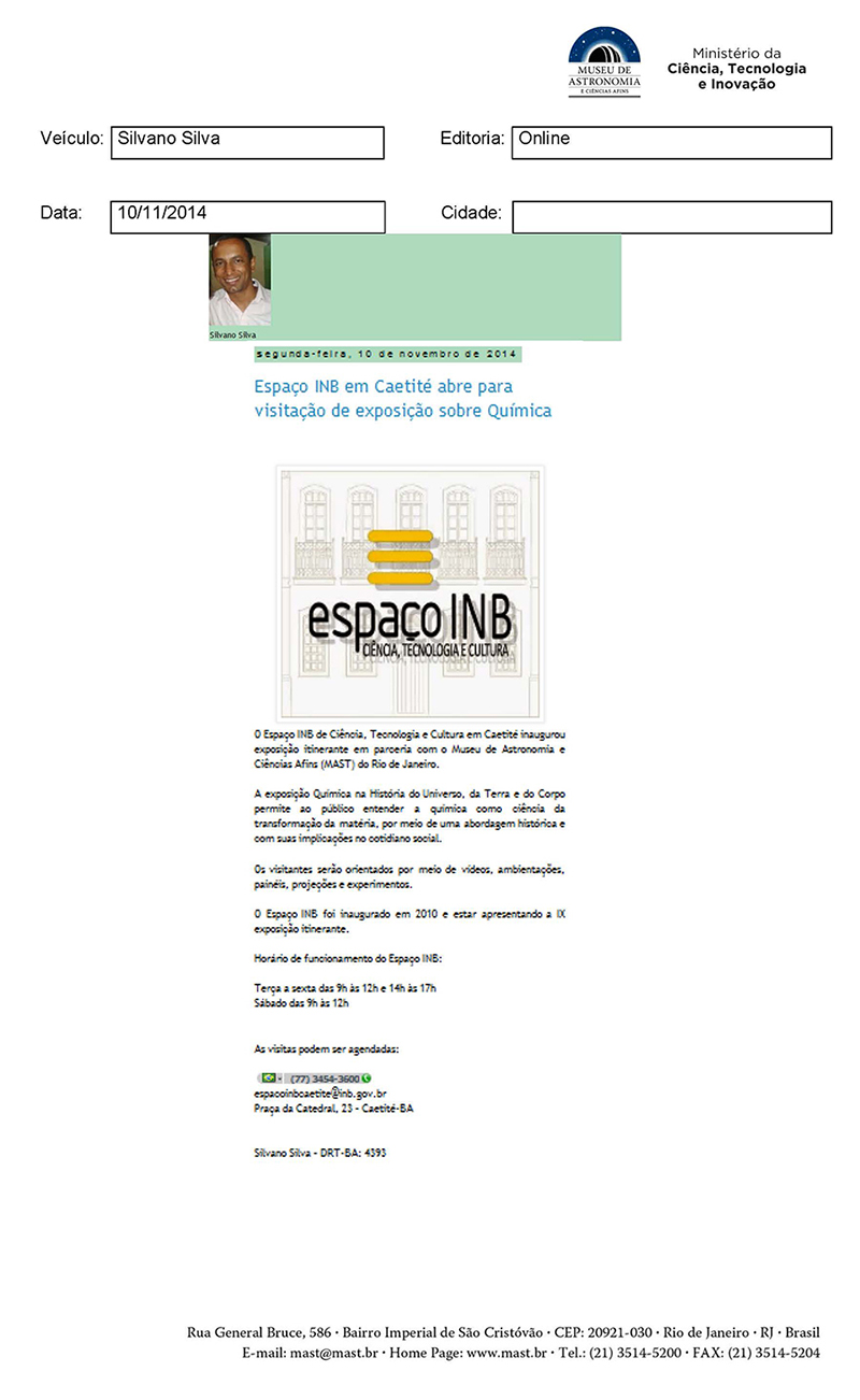 Silvano Silva | Espaço INB em Caetité abre para visitação de exposição sobre Química