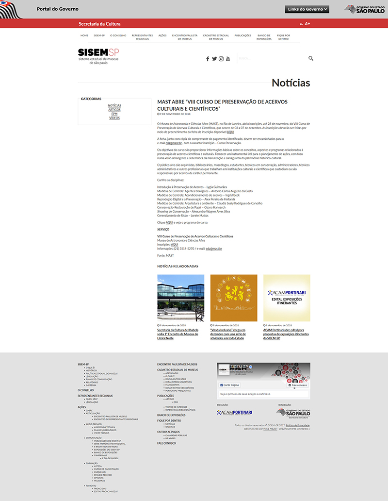 SISEM SP | MAST abre "Curso de Preservação de Acervos Culturais e Científicos"