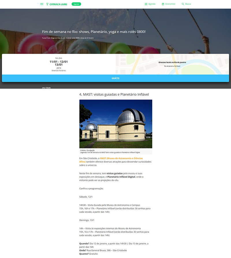Site Catraca Livre | Fim de Semana no MAST