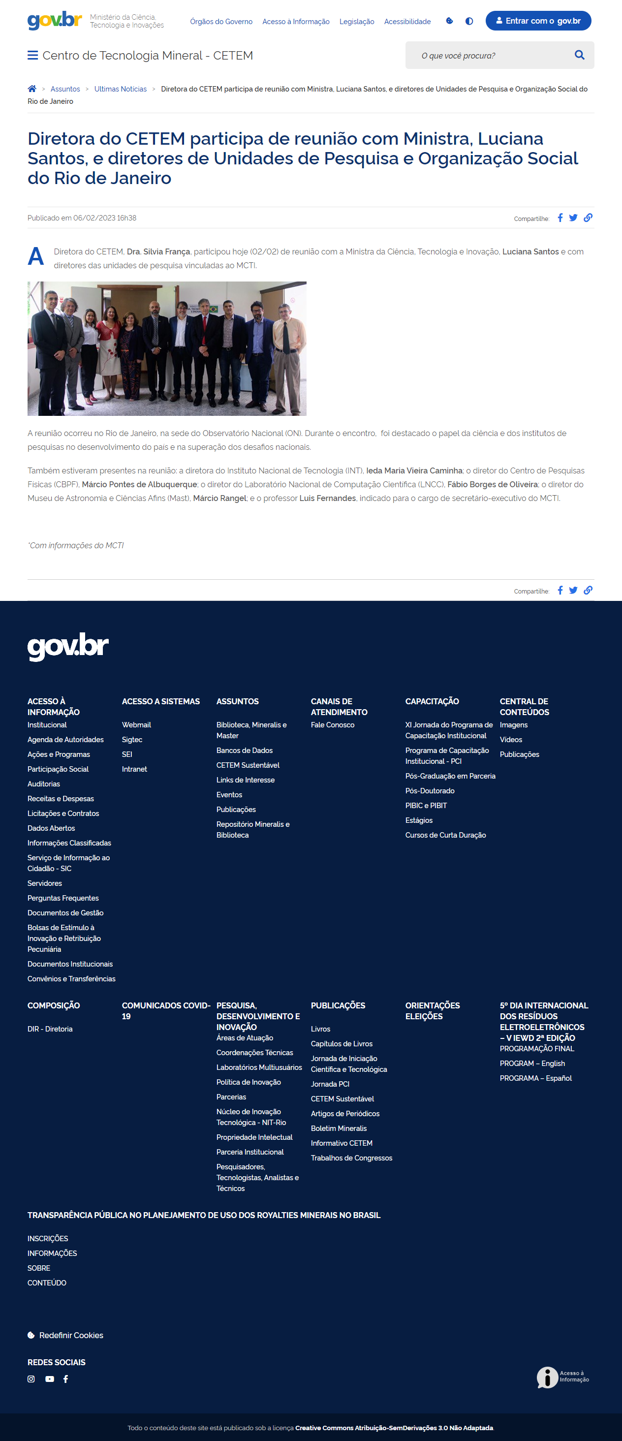 Site CETEM - Diretora do CETEM participa de reunião com Ministra, Luciana Santos, e diretores de Unidades de Pesquisa e Organização Social do Rio de Janeiro