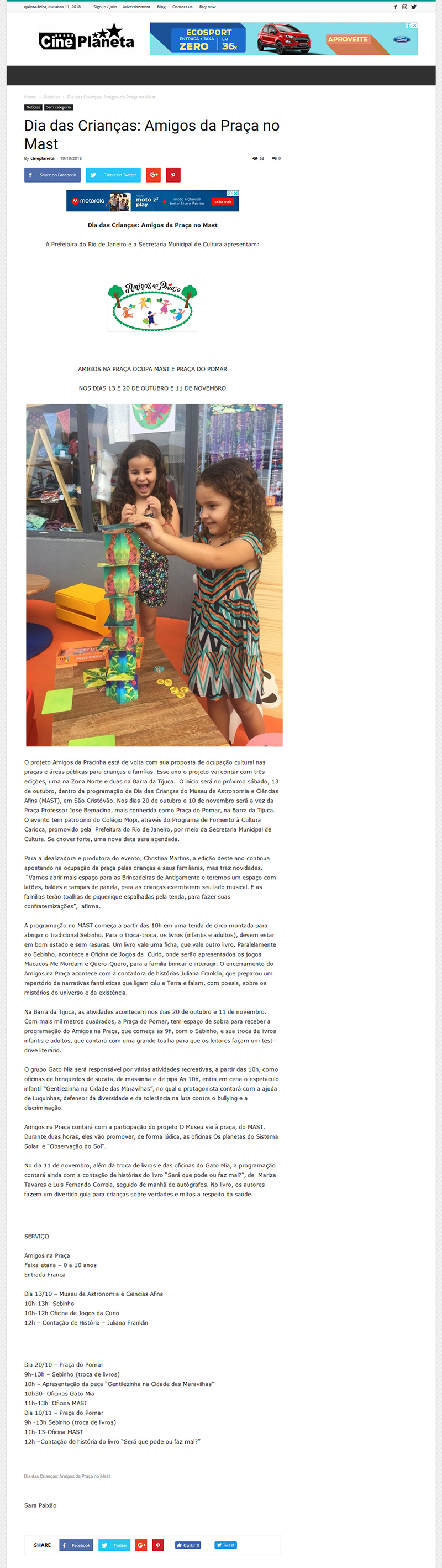 Site Cine Planeta | Dia das Crianças: Amigos da Praça no MAST