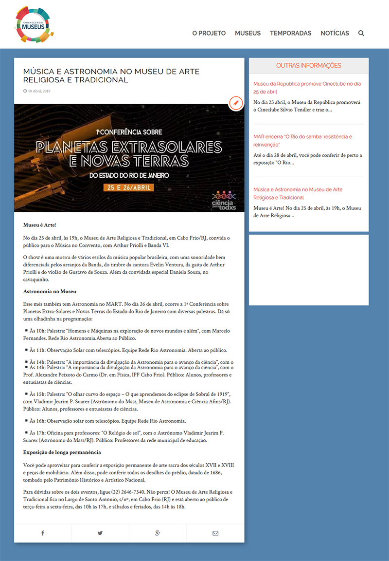 Site Conhecendo Museus | Primeira Conferência sobre Planetas Extra-Solares e Novas Terras