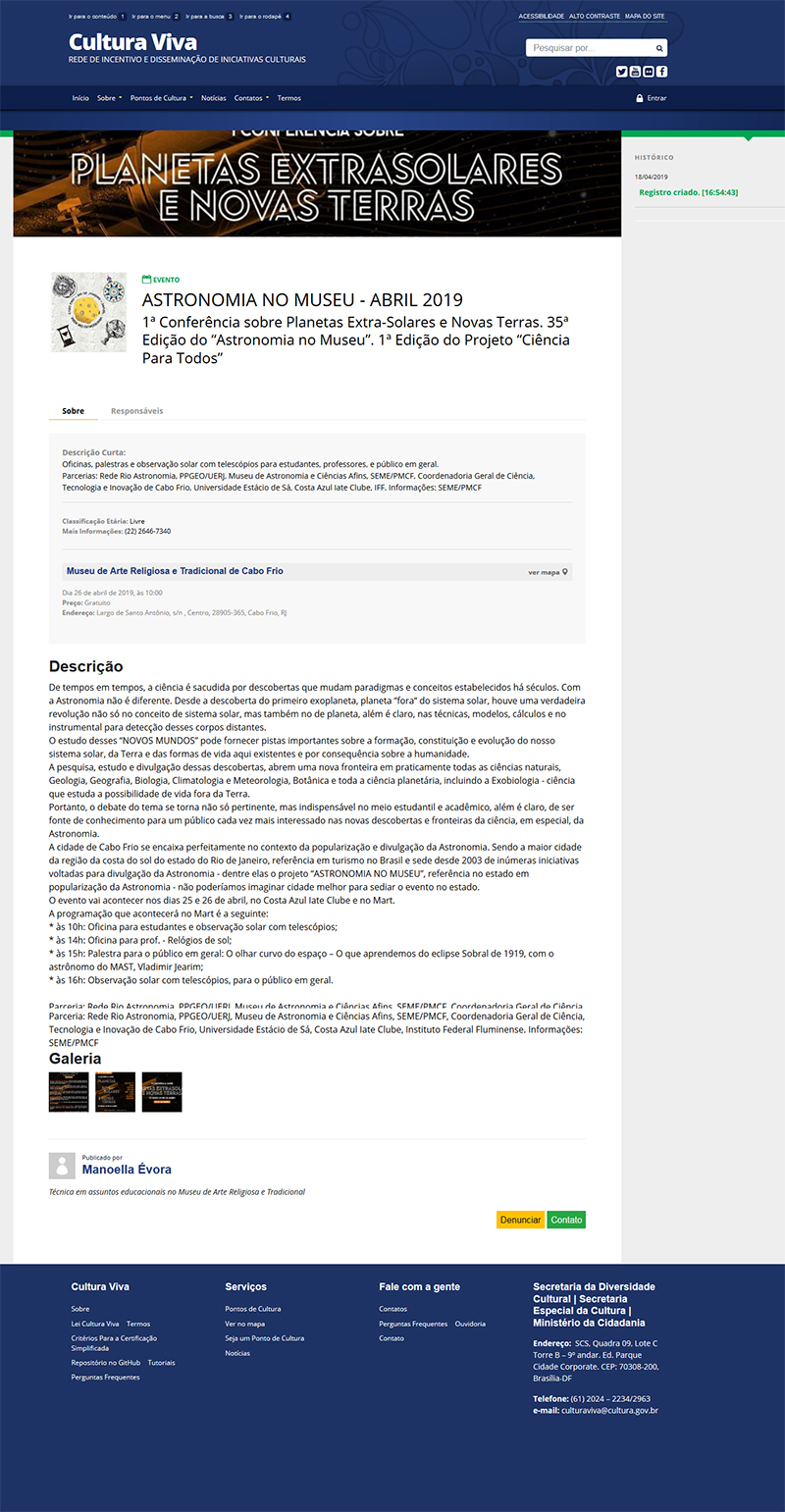 Site Cultura Viva | Primeira Conferência sobre Planetas Extra-Solares e Novas Terras