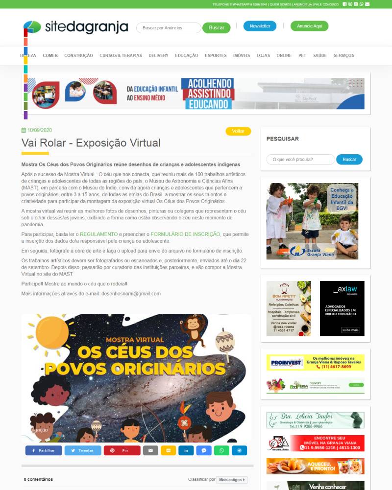 Site da Granja (Cotia-SP) | MAST faz chamada pública para a Exposição virtual 'Os Céus dos Povos Originários’