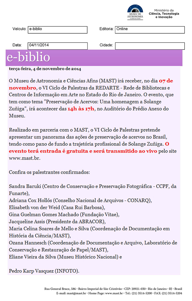 Site e-bilio | VI Ciclo de Palestras da REDARTE