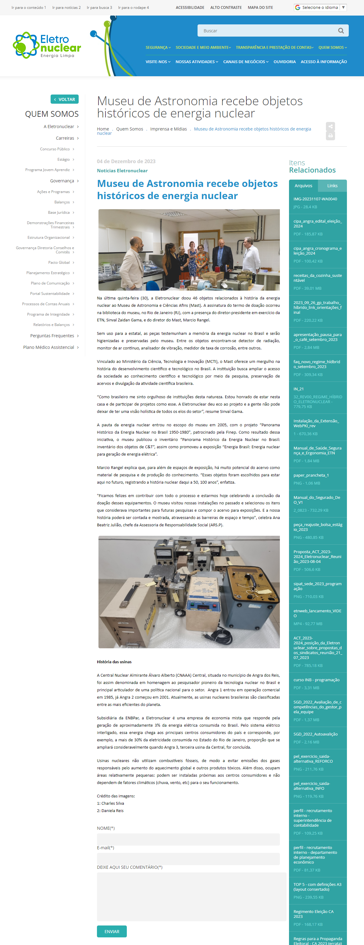 Site Eletronuclear - Museu de Astronomia recebe objetos históricos de energia nuclear