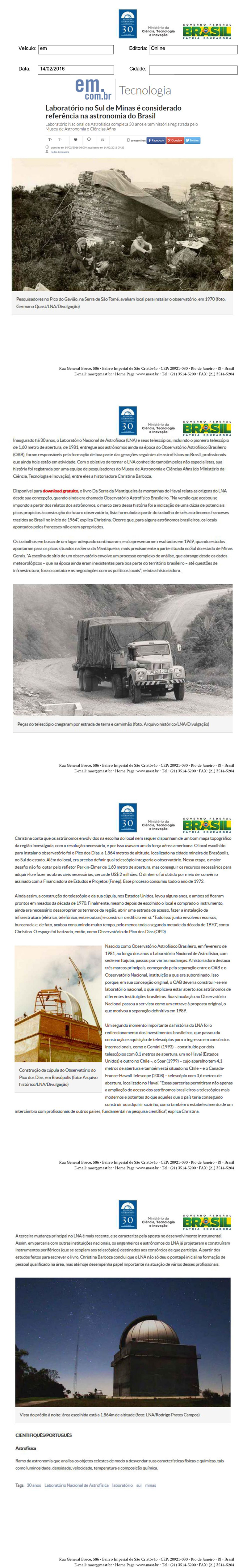 Site em.com.br | Laboratório no Sul de Minas é considerado referência na astronomia do Brasil