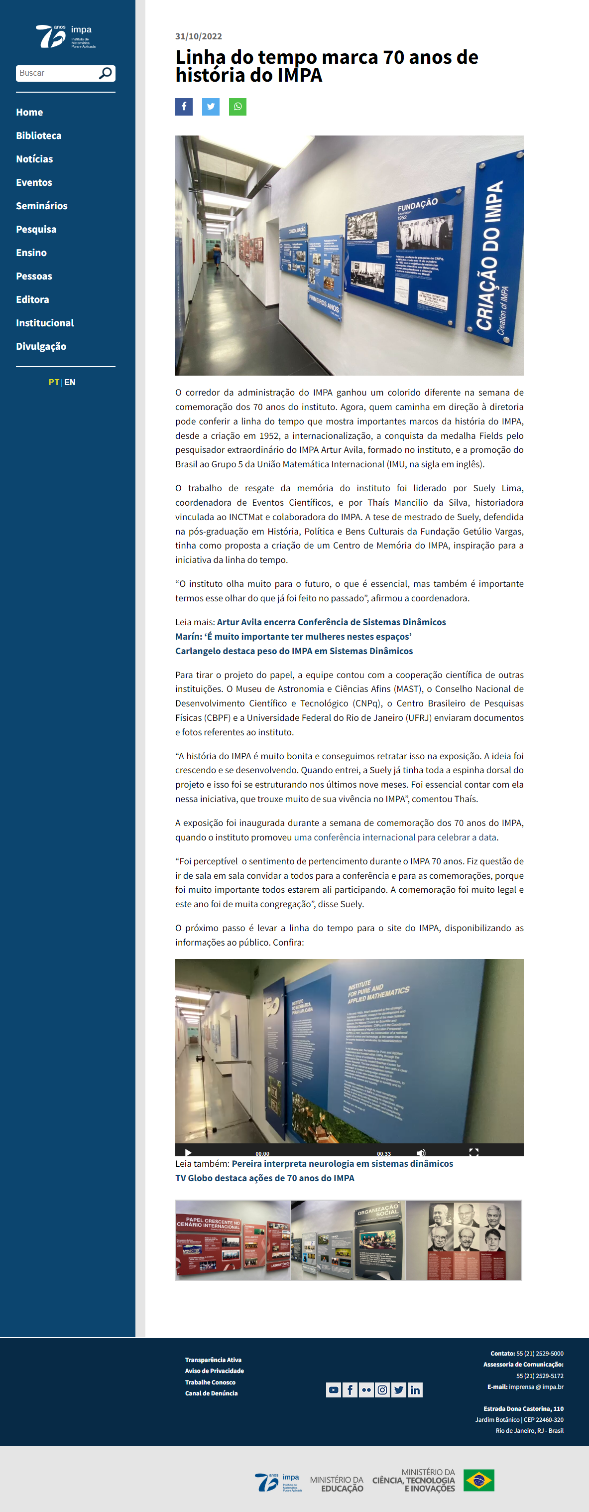 Site IMPA - Linha do tempo marca 70 anos de história do IMPA