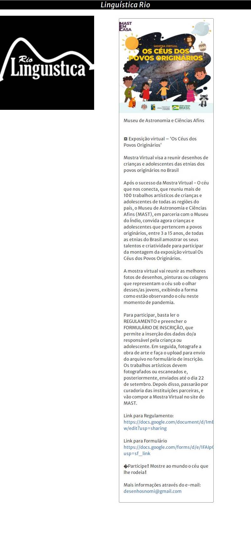 Site Linguística Rio / UFRJ | MAST faz chamada pública para a Exposição virtual 'Os Céus dos Povos Originários’