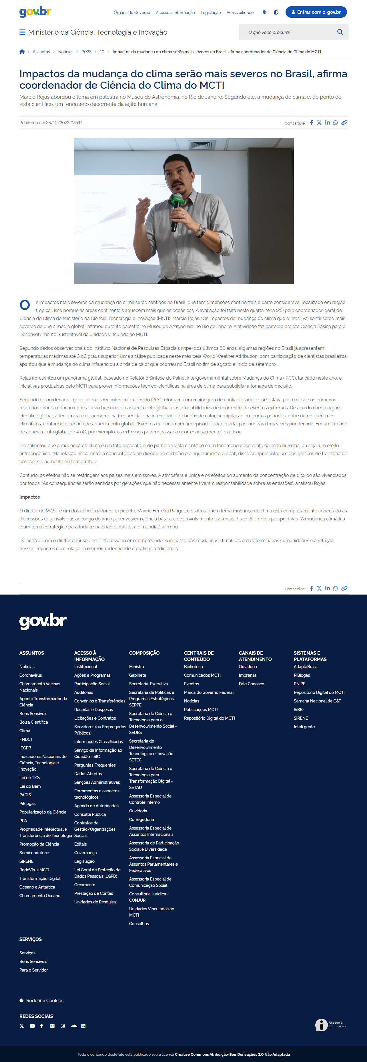 Site MCTI - Impactos da mudança do clima serão mais severos no Brasil, afirma coordenador de Ciência do Clima do MCTI