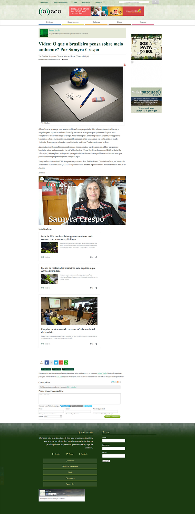Site O Eco | Vídeo: O que o brasileiro pensa sobre meio ambiente? Por Samyra Crespo