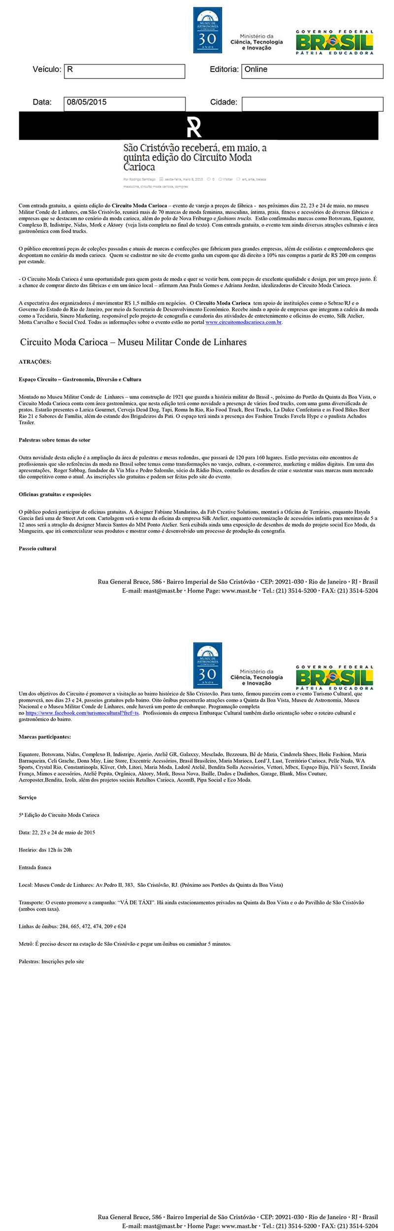 Site R | São Cristóvão receberá, em maio, a quinta edição do Circuito da Moda Carioca