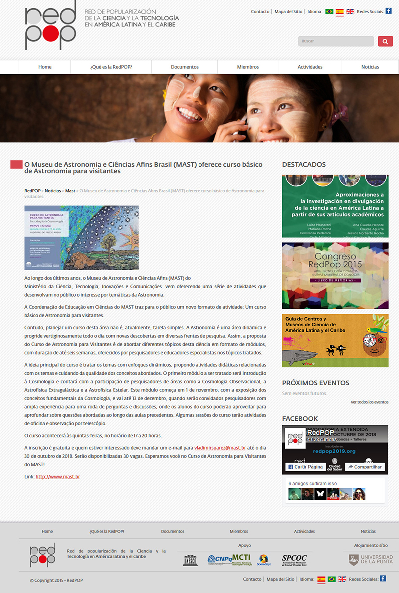 Site Rede Pop | O Museu de Astronomia e Ciências Afins (MAST) oferece curso básico de Astronomia para visitantes