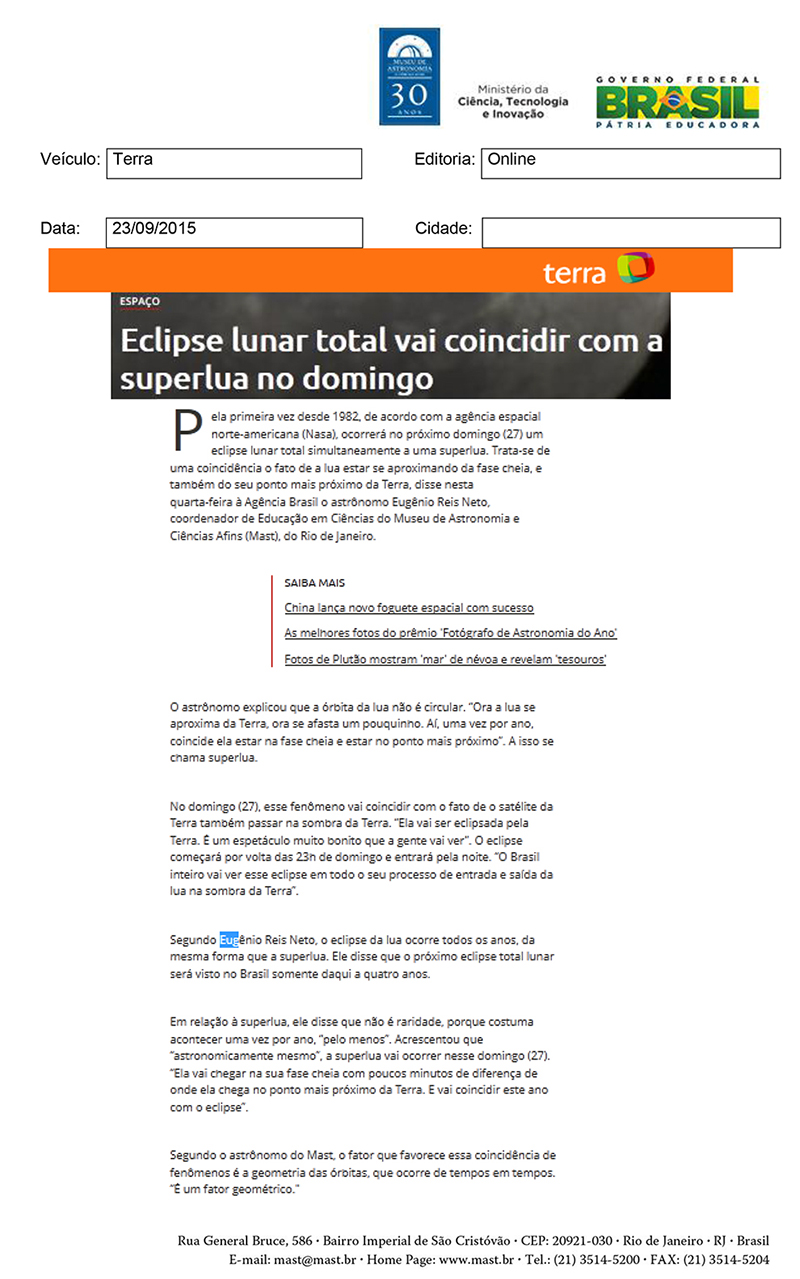 Site Terra | Eclipse lunar total vai coincidir com a superlua no domingo