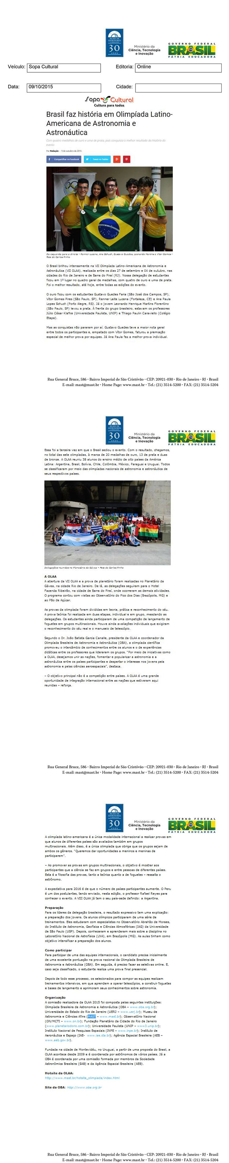 Sopa Cultural | Brasil faz história em Olimpíada Latino-Americana de Astronomia e Astronáutica