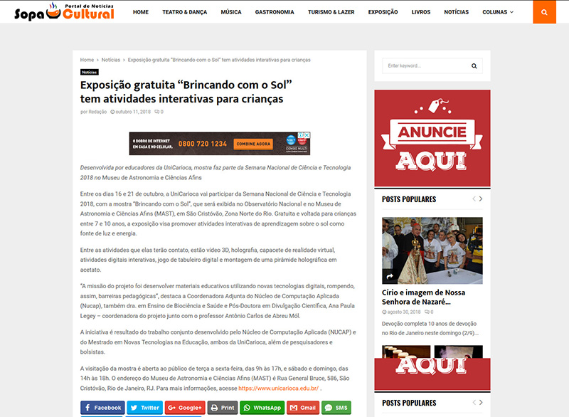 Sopa Cultural | Exposição gratuita “Brincando com o Sol” tem atividades interativas para crianças