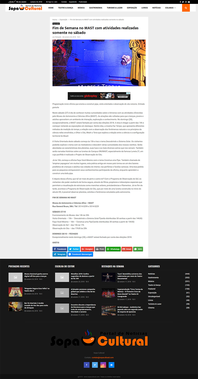 Sopa Cultural | Fim de Semana no MAST com atividades realizadas somente no sábado