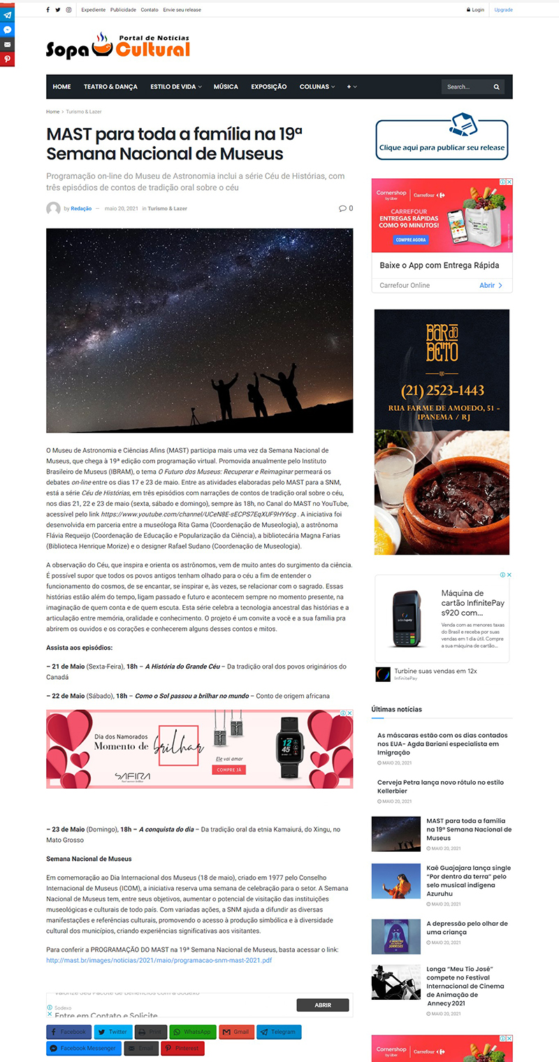 Sopa Cultural - MAST para toda a família na 19ª Semana Nacional de Museus