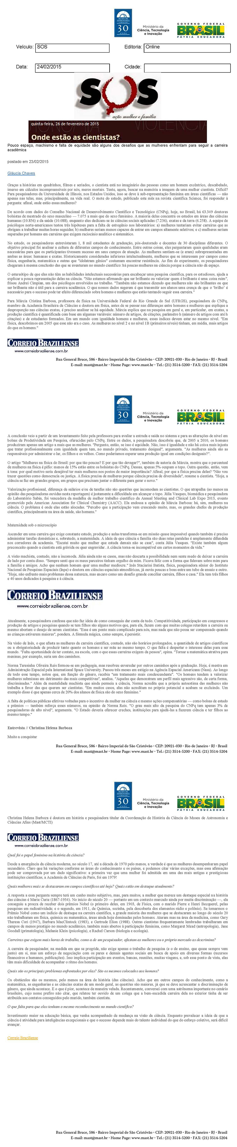 SOS Ação Mulhe e Família | Onde estão os cientistas?