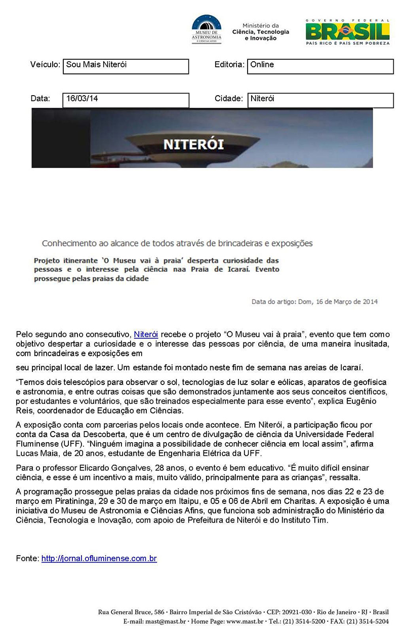 Sou Mais Niterói | Projeto itinerante "O Museu Vai à Praia" desperta curiosidade das pessoas e o interesse pela ciência nas Praias de Icaraí