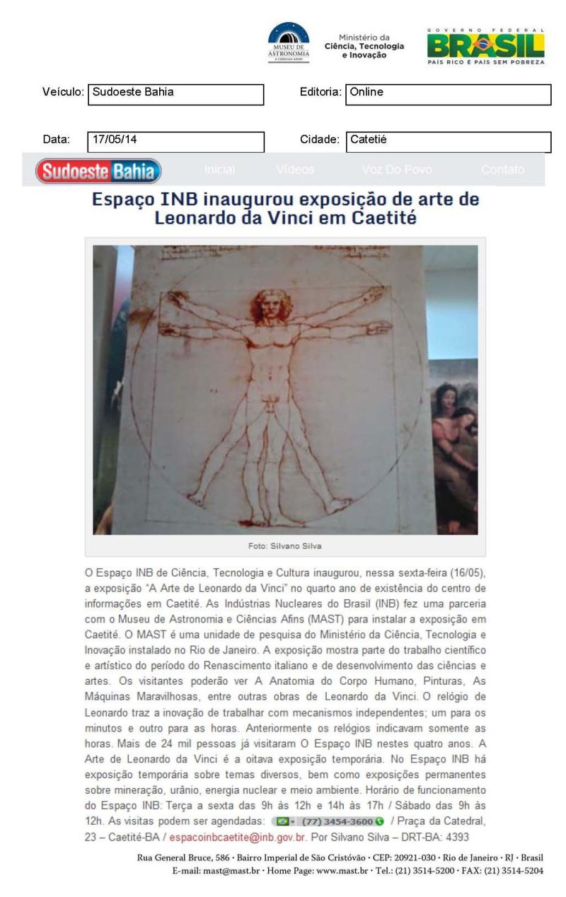 Sudoeste Bahia | Espaço INB inaugurou exposição de arte de Leonardo da Vinci em Caetité