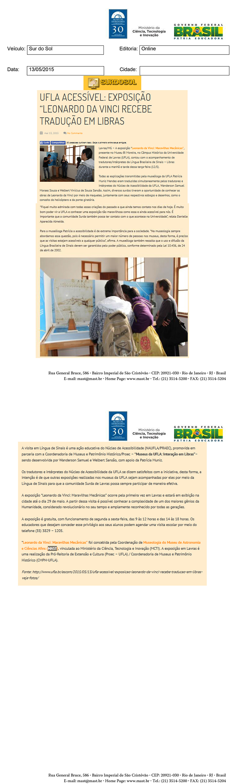 Sur do Sol | UFLA acessível: Exposição Leonardo da Vinci recebe tradução em Libras