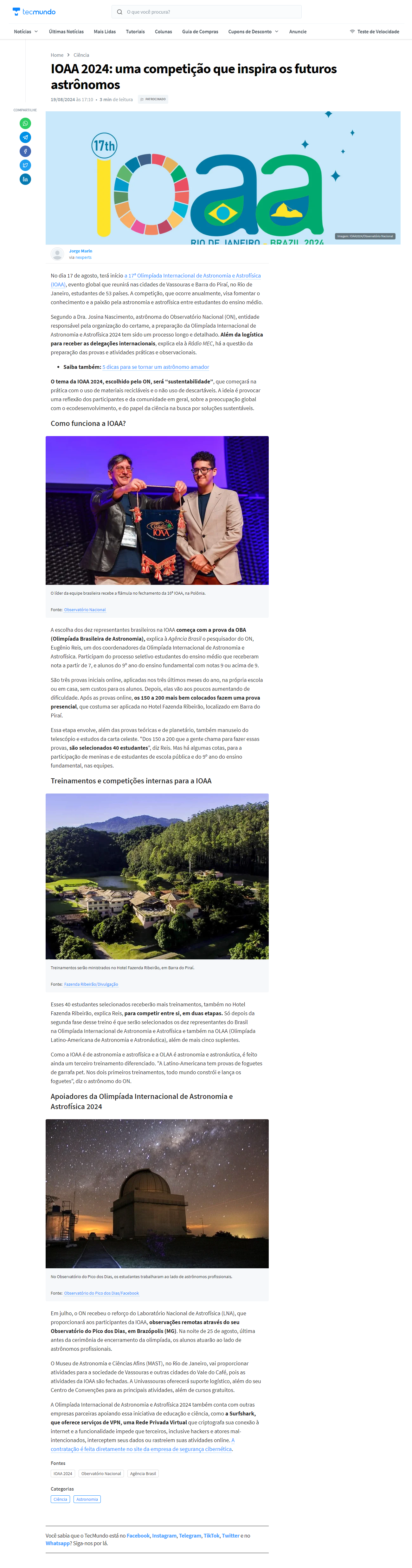 Tecmundo - IOAA 2024: uma competição que inspira os futuros astrônomos
