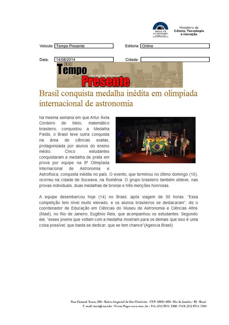 Tempo Presente | Brasil conquista medalha inédita em olimpíada internacional de astronomia