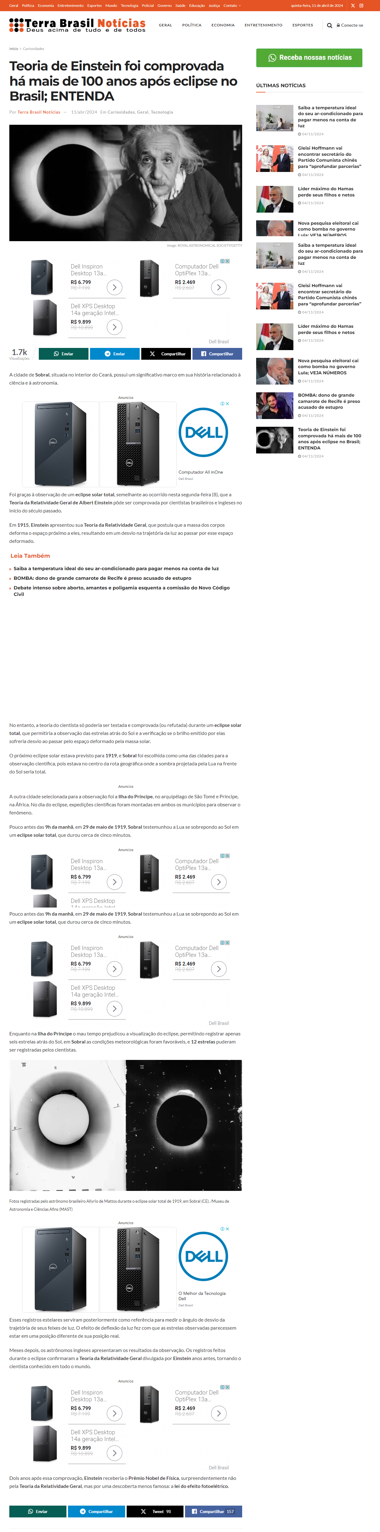 Terra Brasil Notícias - Teoria de Einstein foi comprovada há mais de 100 anos após eclipse no Brasil; ENTENDA