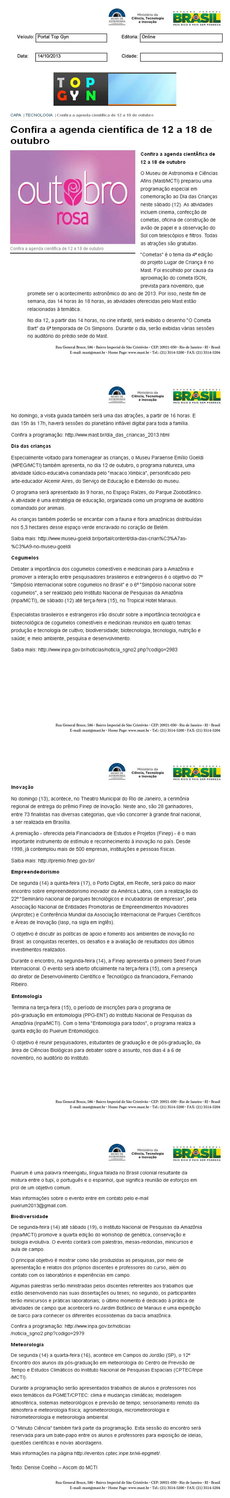 Top Gyn | Confira a agenda científica de 12 a 18 de outubro