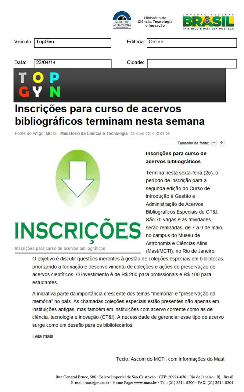 Top Gyn | Inscrições para curso de acervos bibliográficos terminam nesta semana