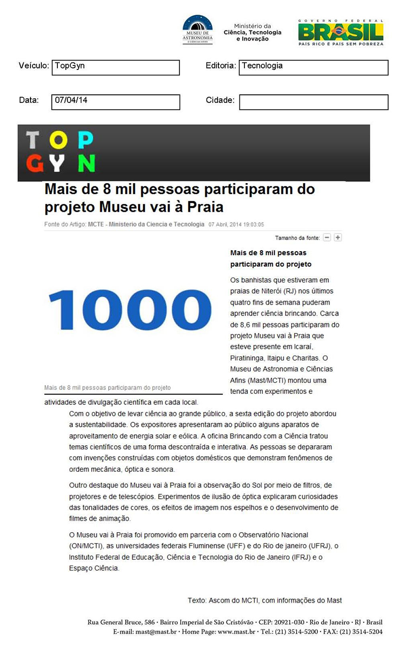 Top Gyn | Mais de 8 mil pessoas participaram do projeto Museu Vai à Praia