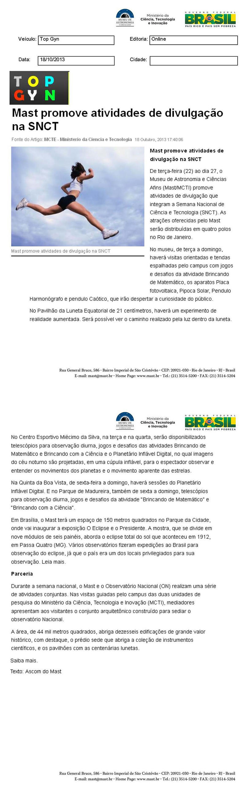 Top Gyn | MAST promove atividades de divulgação na SNCT