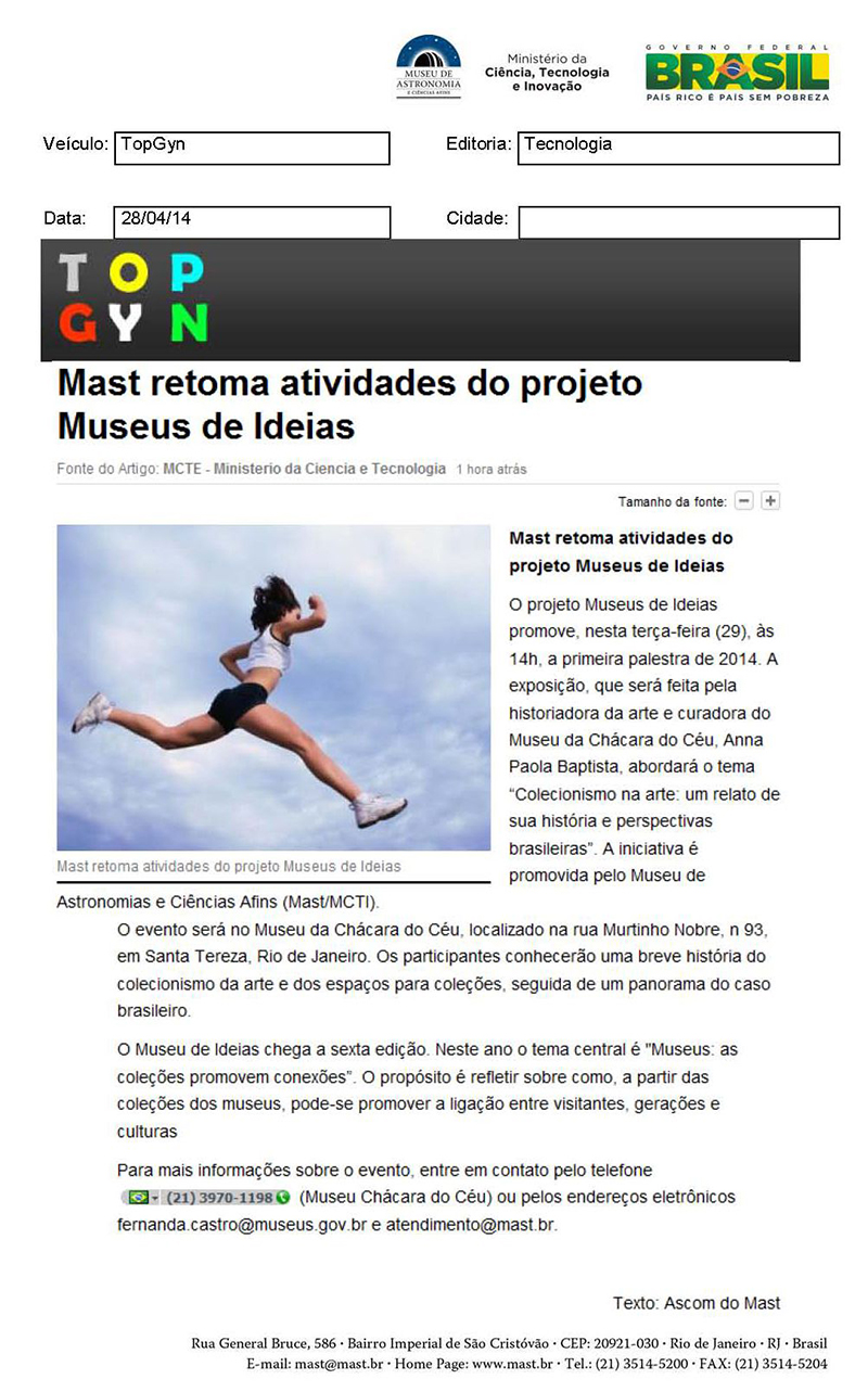 Top Gyn | MAST retoma atividades do projeto Museu de Ideias