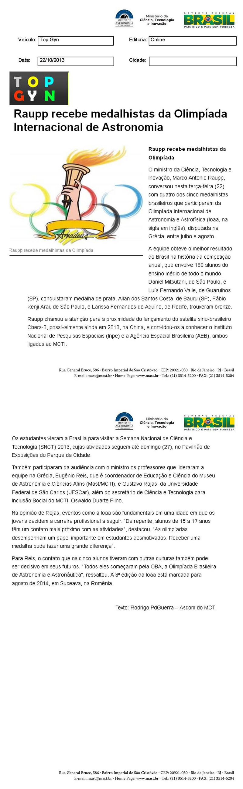 Top Gyn | Raupp recebe medalhistas de Olimpíada Internacional de Astronomia