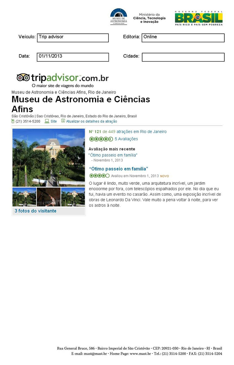Trip Advisor | Museu de Astronomia e Ciências Afins