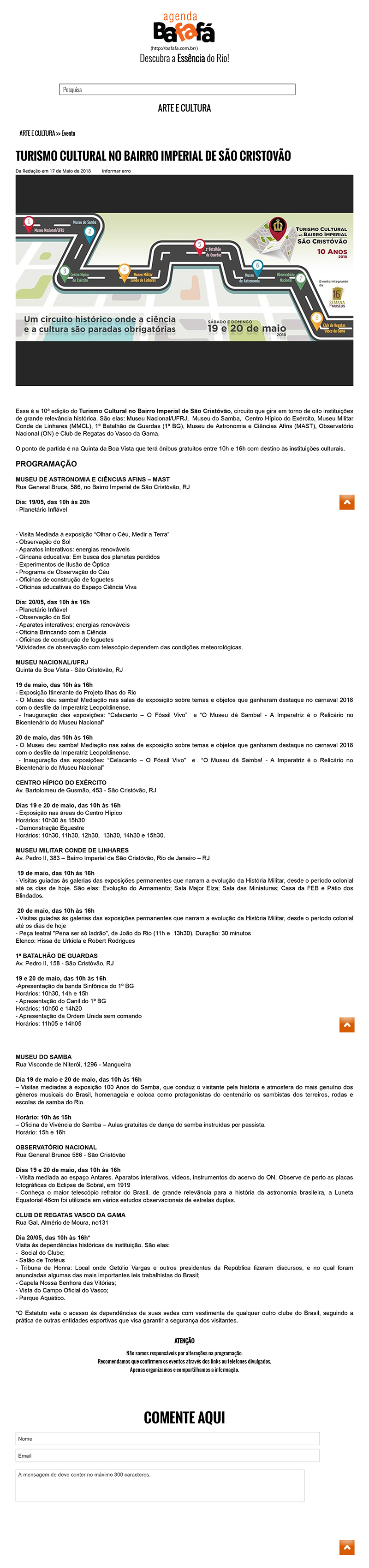 Agenda Bafafá | Turismo Cultural no Bairro Imperial de São Cristóvão